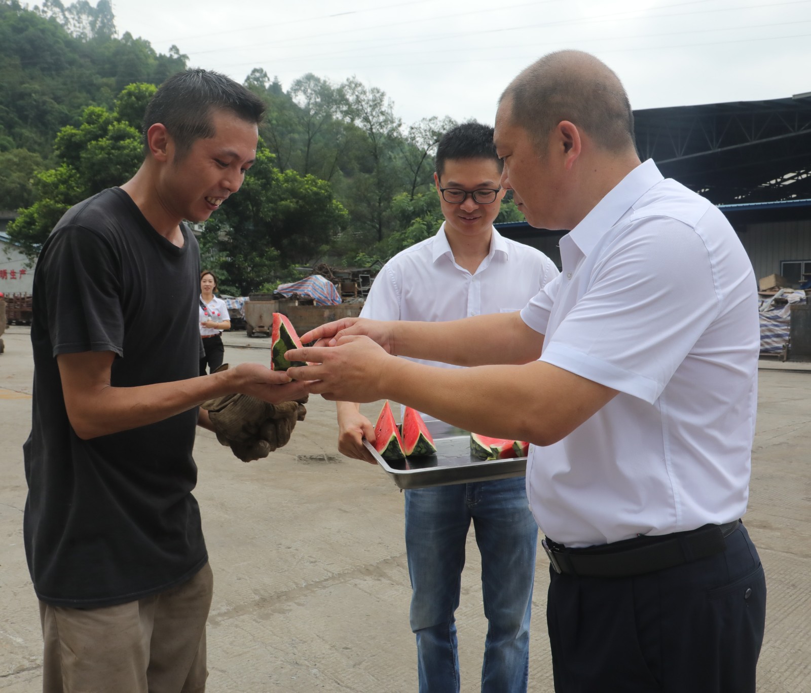 在嘉阳煤矿井口、工业广场、大包机检修车间,在川投峨旅小火车运营管理部、芭沟火车站、游客中心花杆岗亭、白石岩停车场、黄村井出井口,在综合服务公司芭沟综修队工地现场。机关第三党支部的党员代表们送出了50件清凉解暑的矿泉水、50颗又大又甜的西瓜,向坚守在一线的职工们送去了丝丝清凉,表达了党组织的缕缕关怀。