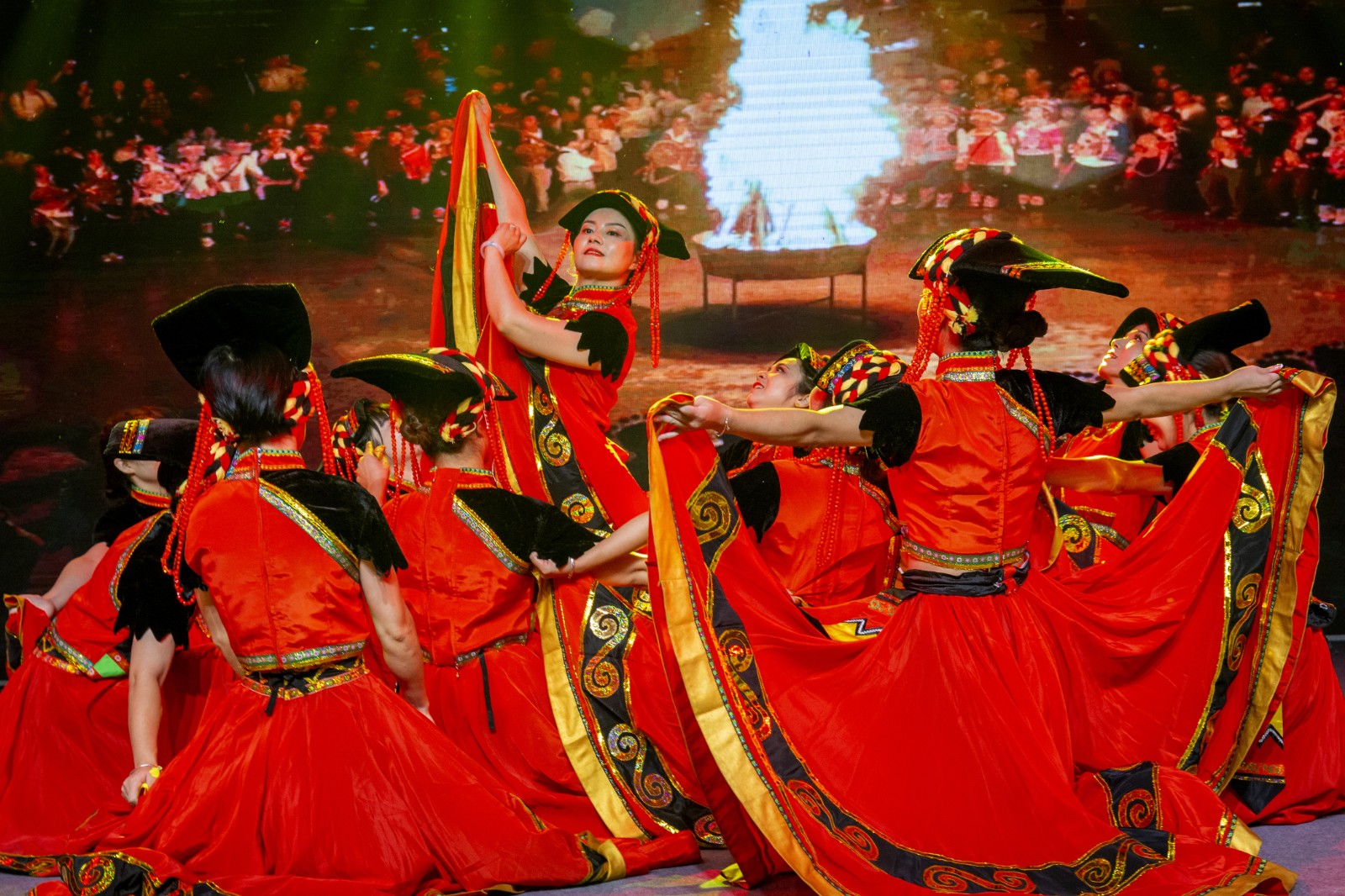 晚会在舞蹈《中国梦美丽的梦》中拉开序幕,整场演出形式多样,内容丰富多彩,舞蹈、表演唱、相声、朗诵、三句半、快板等轮番上演,歌声婉转动听,舞姿优美动人。《彝家打歌》《苗岭飞歌》《大中国》等节目生动展现了新时代家乡的变化,表达了大家对祖国的无限热爱和深情祝福;《山河无恙在我胸》《守护》《我心中的红》等展现了全体职工一心向党、踔厉奋发、奋勇向前的精神面貌;舞蹈《秀水泱泱》传承红船精神、庚续红色血脉,唤起了同志们对革命烈士的敬仰之情;快板《筑梦未来》热情歌颂党、礼赞新时代,展现矿山智能化建设、绿色转型带来的发展变化,激发了嘉阳儿女团结向上,永远跟党走,奋进新征程的信心和决心;三句半《小芭蕉·新征程》、相声《火哥与痴哥》让晚会气氛更加热闹,不断把晚会推向高潮。