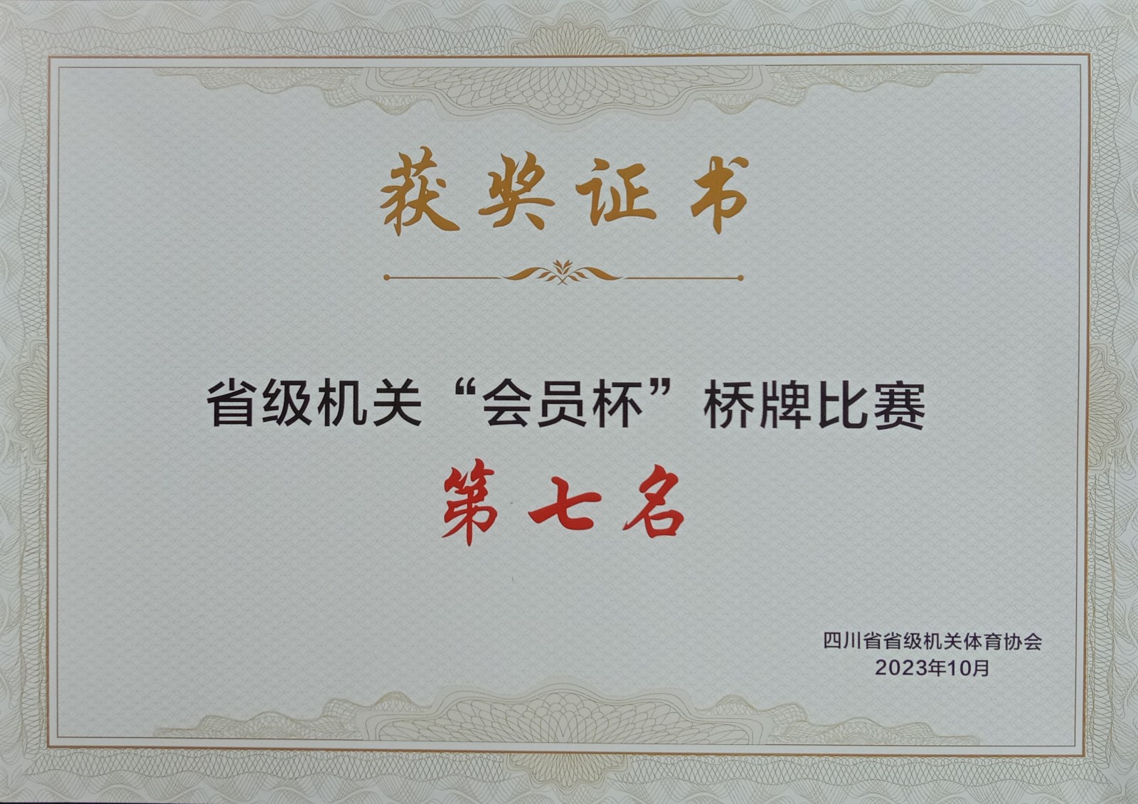 10月20-21日,集团公司组队参加四川省级机关“会员杯”桥牌赛,从28支队伍中脱颖而出喜获第七名的好成绩。为企业争得了荣誉。