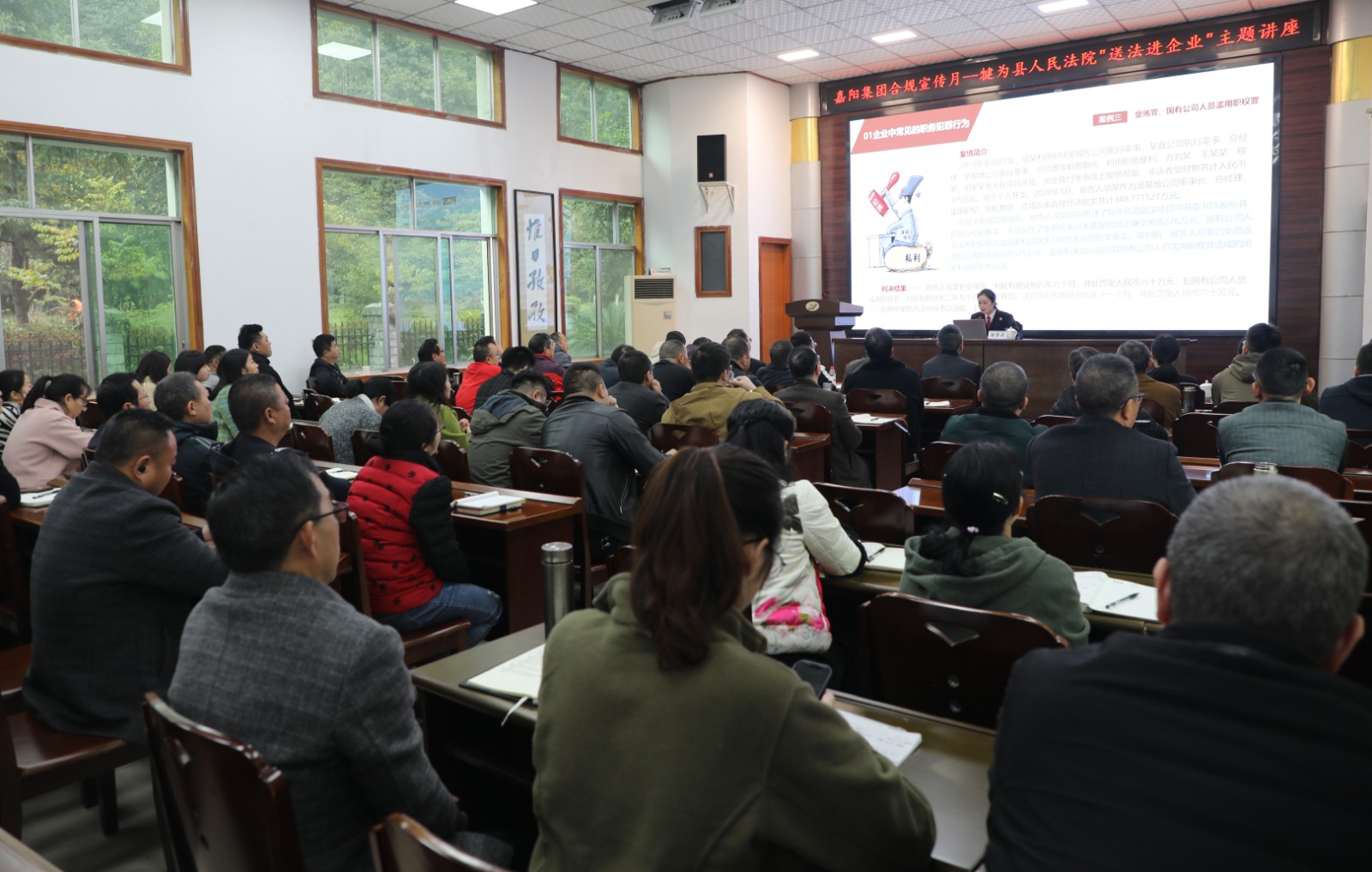 讲座由犍为县人民法院审判管理办公室主任谢黎莉进行讲授,她从企业中常见的职务犯罪行为、诱发企业员工职务犯罪的原因以及企业员工职务犯罪的预防三个维度切入,为大家深入细致的讲解分享了贪污、受贿、行贿、挪用公款以及签订、履行合同失职被骗等罪名,并用大量真实案例“以案说法”“以案释纪”“以案施教”。