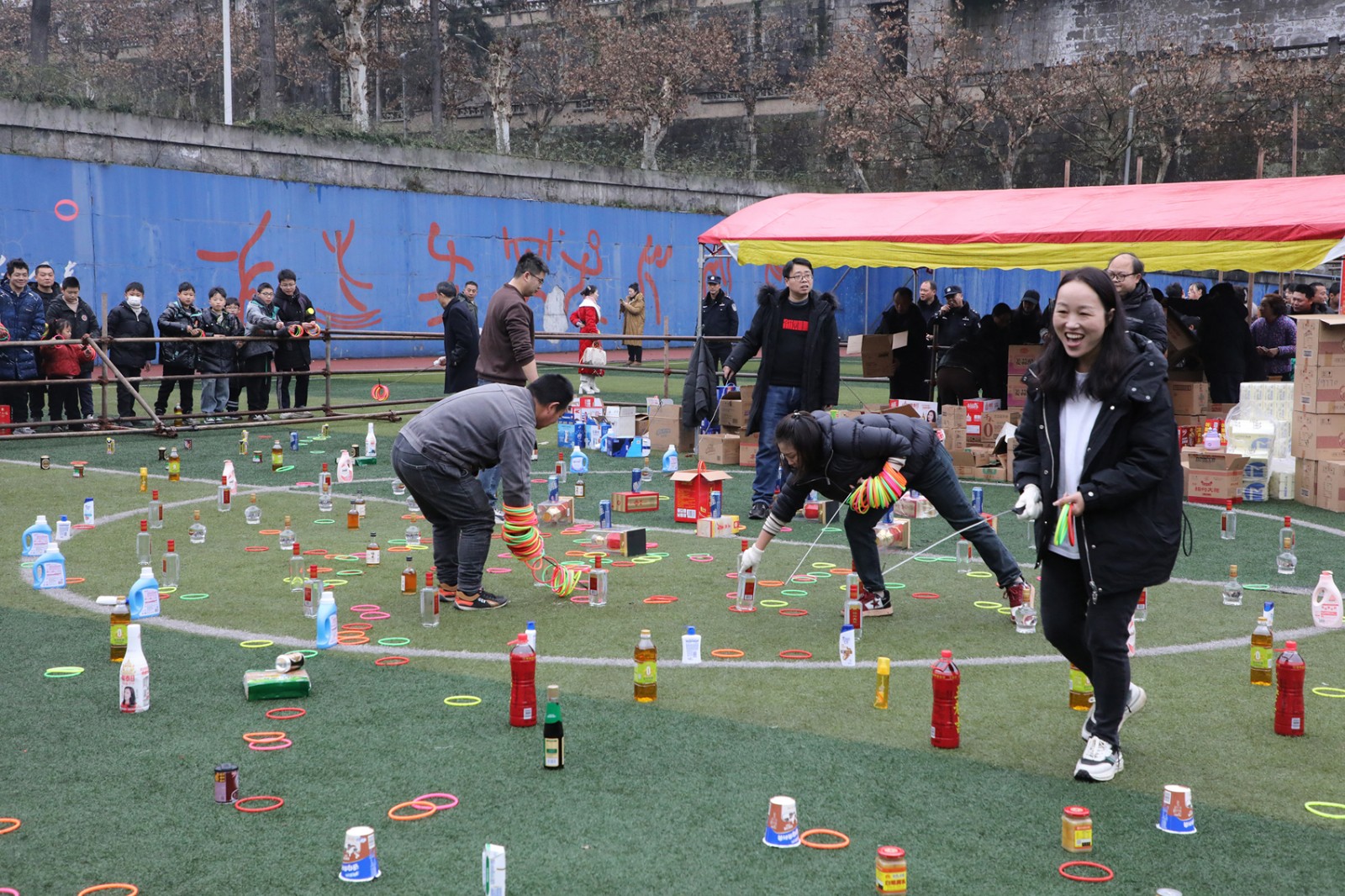 矿区足球场和芭沟老矿区分会场的实物套圈活动同样人气爆棚。“甩远点,套瓶好酒!”套圈场地被围得水泄不通。职工家属们手持套圈,神情专注,朝着心仪的奖品奋力投出。每当有人成功套中目标,周围便传来阵阵喝彩声,现场气氛热闹非凡。