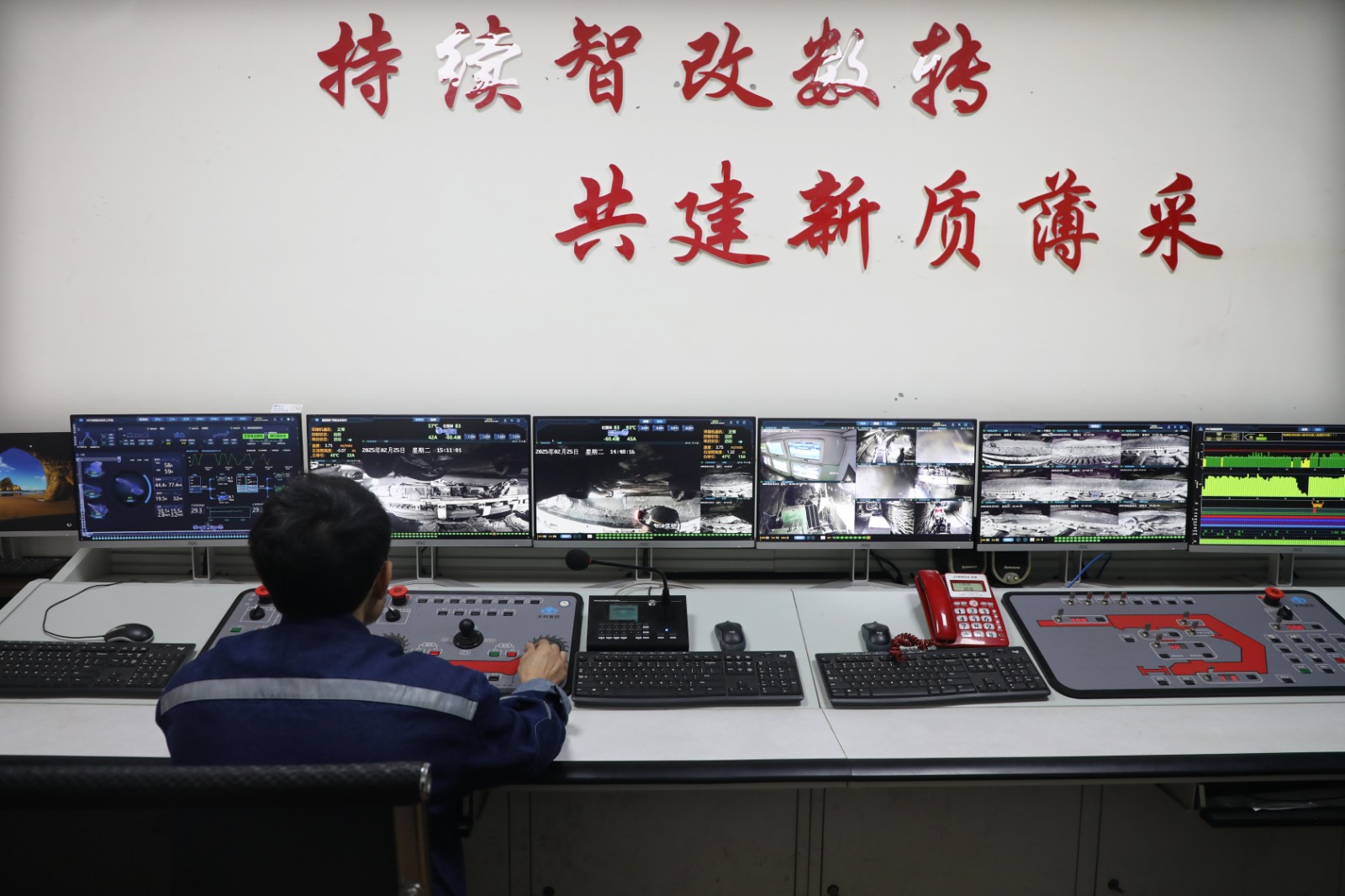 面对困境,采煤二队坚持“智能驱动、问题导向、精准施策、安全为先”原则针对3303工作面难题,优化割煤路径与采煤工作面顶板、底板管理策略,在冲刷带采用“保顶卧底”的方式,岩层区域切换“慢速低割”模式,有效降低设备磨损,保障采煤机正常作业。同时,创新管理机制,依托5G防爆手机、视频巡检系统及远程操控平台,构建“实时采集—即时上传—远程监控—快速响应”闭环体系,通过微信群实时共享工作面视频,实现每班生产全过程动态掌控,确保采煤循环保持正常。设备保障方面,9月份不仅完成了3303智能化设备日常检修维护,还用13天时间完成了3125新采煤工作面桥转机、刮板输送机、采煤机的抢修与安装,为采煤工作面搬迁接替创造了有利条件。目前,全队职工正众志成城合力攻坚,生产呈现平稳有序态势。