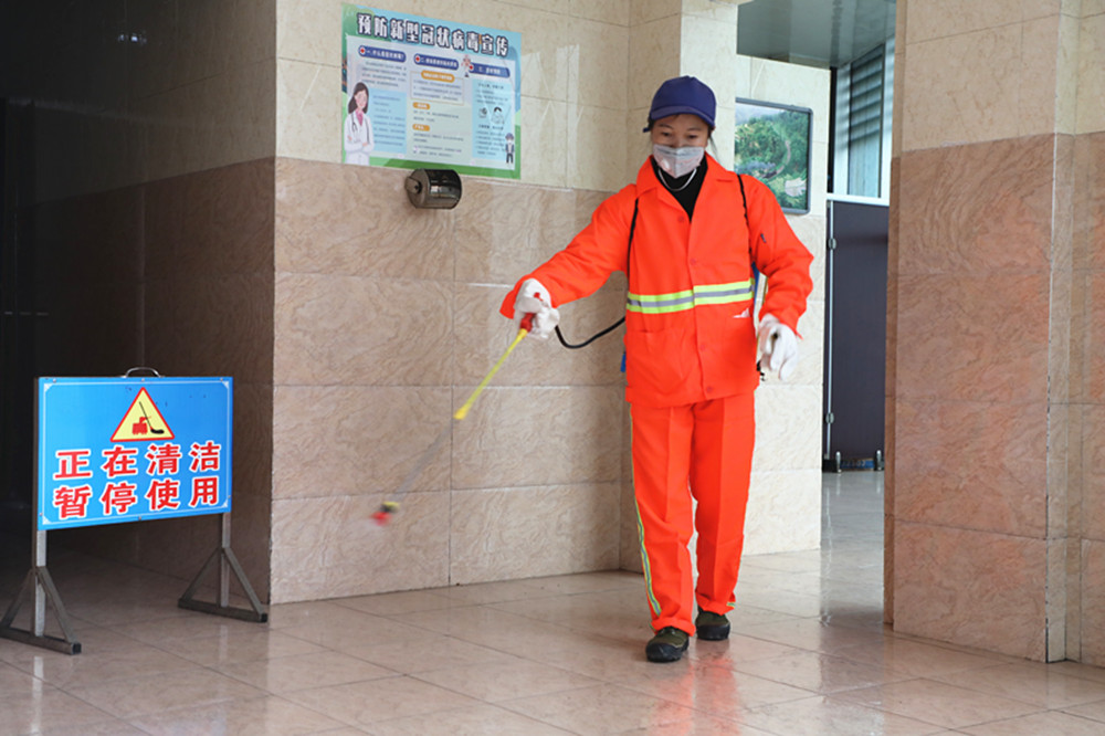 按照预定计划,环卫班消毒范围包括新老两个矿区和一个石溪片区,矿区中一个观音溪花园面积就达5000平方米,细算下来消毒区域达数万平方米!“出门戴口罩,别去凑热闹……”耳旁不时传来防疫宣传知识和举措,原来在绿化班常常形影不离的邓容和邓琼两姐妹因分工区域不同,第一天抗“疫”却要分开了,而且必须到处串,所到之处必须消毒无遗漏,她们深知防疫工作最终要落实到基层,落实到每个人的行动,自己的岗位正是基础中的重中之重!