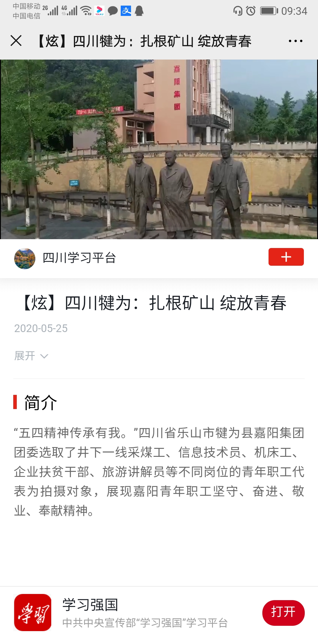 “看,咱嘉阳上‘学习强国’平台了!”由华体会官方网页版,华体会(中国)团委组织拍摄的短视频“燃烧的青春”亮相‘学习强国’四川平台,短视频迅速在朋友圈刷屏成为热议话题。