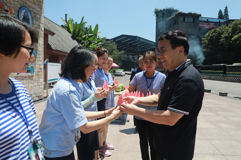 盛夏炎炎,骄阳似火。怀林副总又顶着烈日奔赴川投峨旅和嘉阳煤矿生产一线,看望慰问坚守在高温岗位上的职工同志们,为火车司机、讲解员和煤矿一线职工送上甘甜的西瓜和清凉的矿泉水。所到之处,怀林副总为职工们送上西瓜,并亲切叮嘱他们“天气炎热工作时更要注意自身安全!”他要求嘉阳和峨旅要切实将防暑降温工作落到实处,全方位保障高温岗位职工的身体健康和安全。
