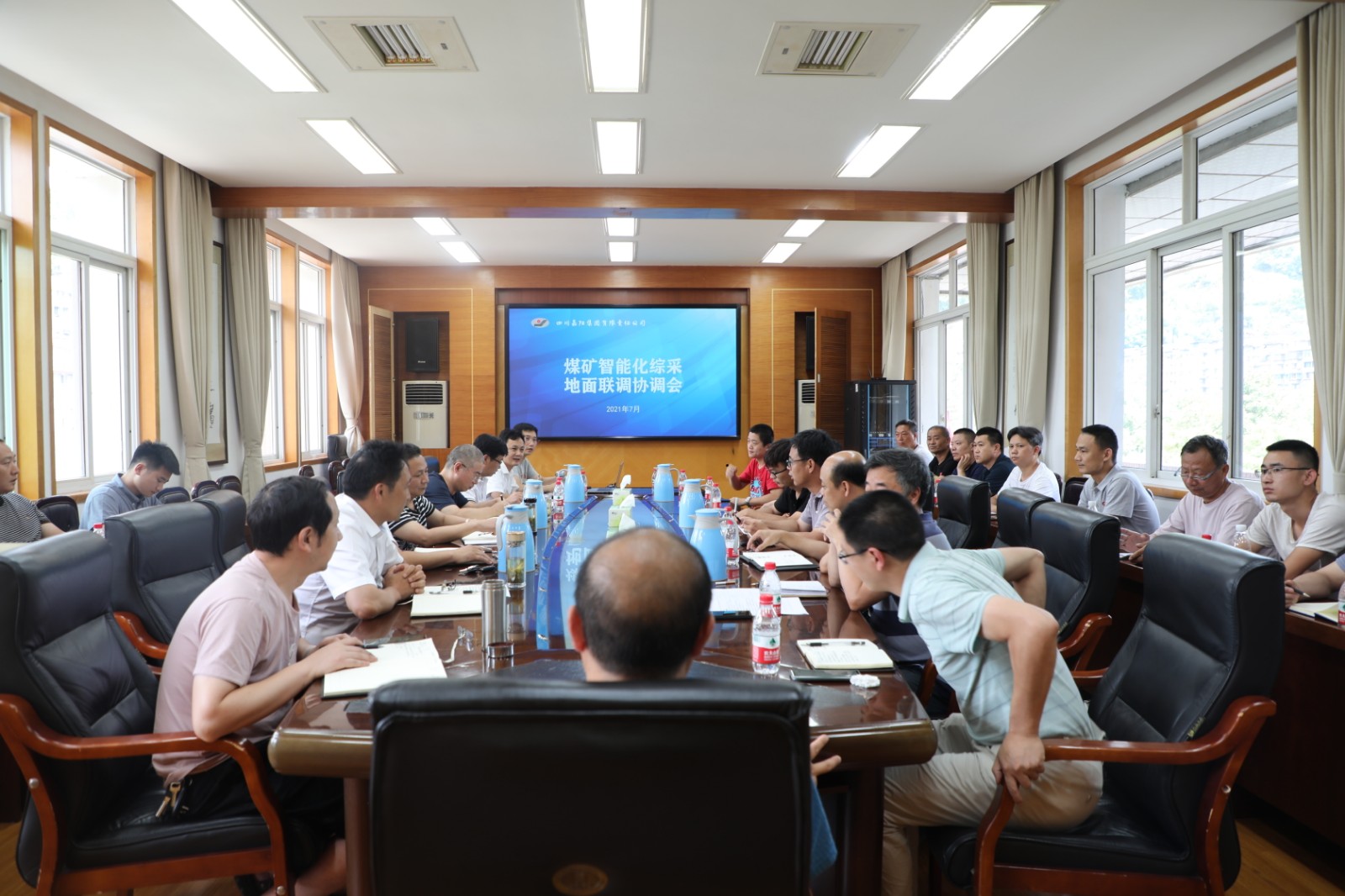 7月27日,华体会官方网页版,华体会(中国)召开智能化综采地面联调协调会,总经理、智能化综采项目领导小组组长范勤英,副总经理、副组长王维洪、詹本远,总经理助理丰雄龙,嘉阳煤矿矿长陈文兵,公司机电主任工程师、智能办主任刘爱明等出席协调会,智能化综采安装工作相关责任人、厂家技术人员、物供司相关人员以及公司智能化综采项目技术服务团队相关人员参加会议。