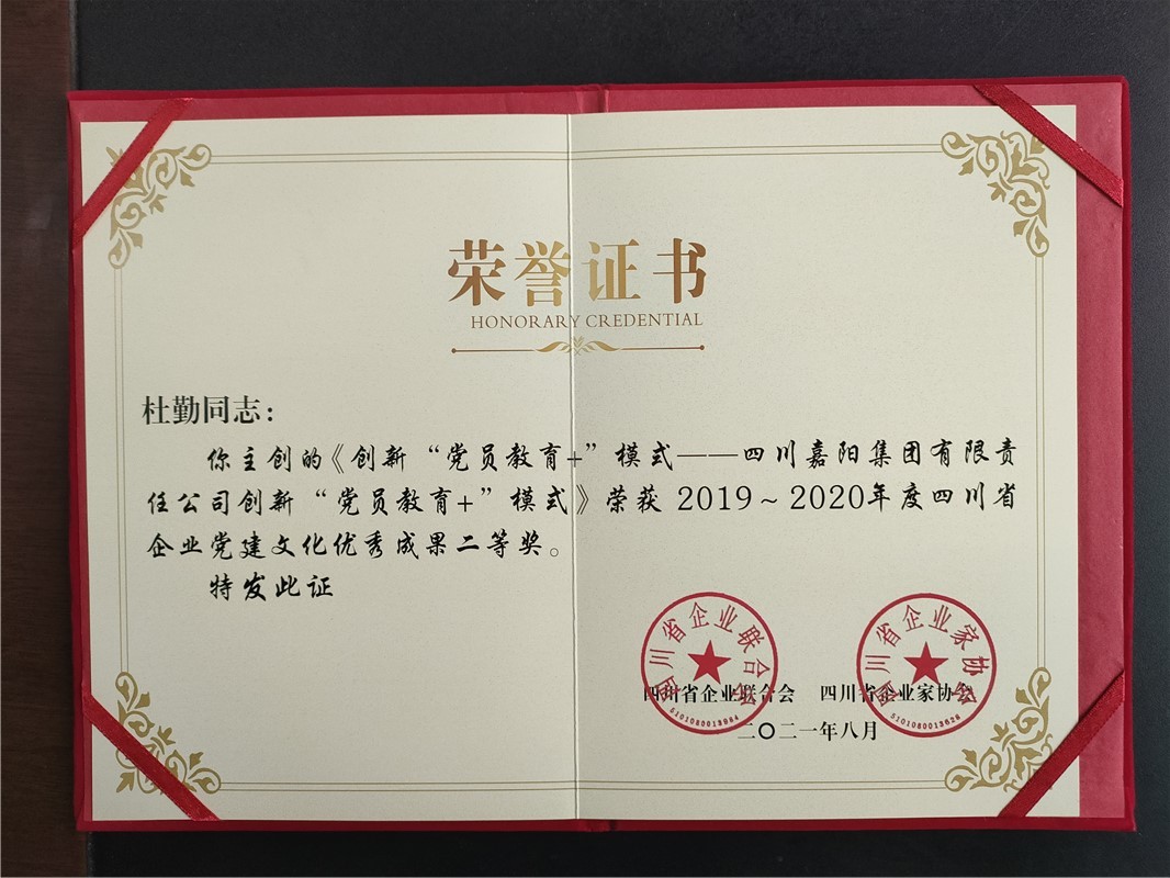 党建引领,文化铸魂,华体会官方网页版,华体会(中国)多年来在党建文化领域深耕细作,成绩斐然。四川省企业联合会、四川省企业家协会联合开展2019—2020年度四川省企业文化建设优秀成果评选活动,华体会官方网页版,华体会(中国)以《创新“党员教育+”模式》为题参选,主创人为党委书记、董事长杜勤、川投峨旅党总支副书记袁成方,参创人为党委副书记谢建国。通过申报、推荐、初评、专家评审等相关程序,华体会官方网页版,华体会(中国)在众多企业中脱颖而出,荣获四川省企业党建文化优秀成果二等奖。华体会官方网页版,华体会(中国)将再接再厉,进一步加强党建文化建设,促进企业实现高质量发展。