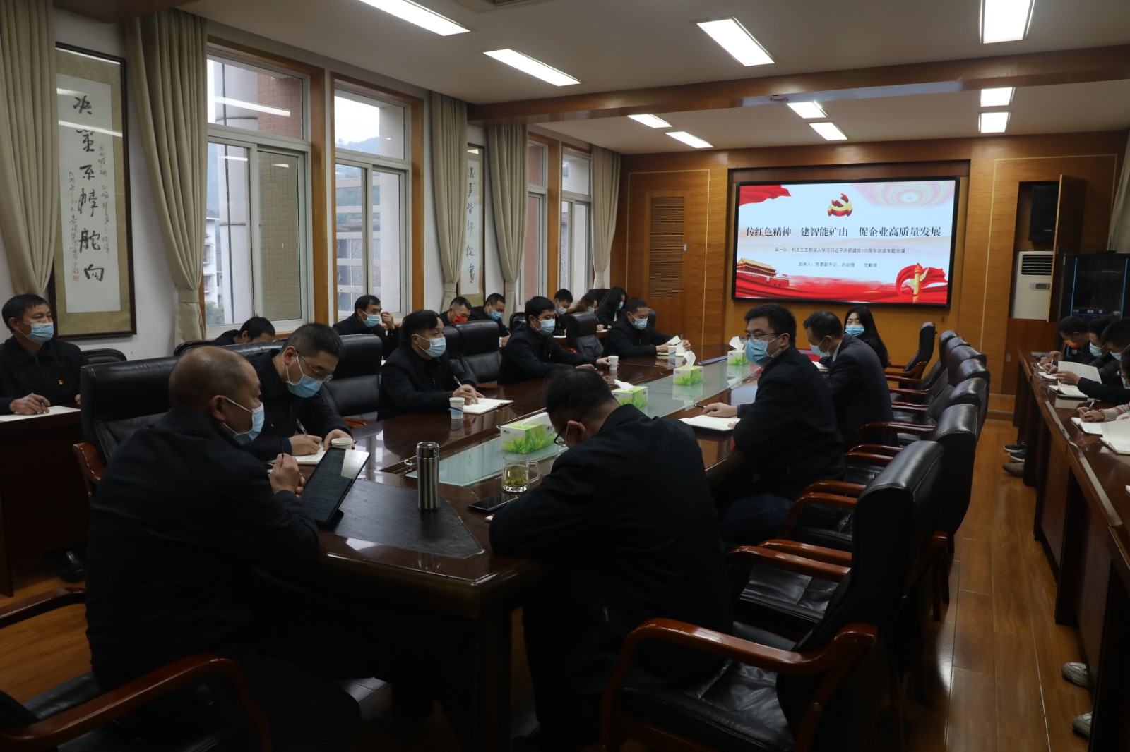 范勤英同志以《传红色精神 建智能矿山 促企业高质量发展》为题与党员们一起深入学习了习近平总书记“七一”重要讲话,重温党的百年历史,感受党的丰功伟绩,深刻领会和把握讲话的丰富内涵、核心要义、实践要求,以史为鉴,庚续奋斗力量,践行初心使命,增强实现中华民族伟大复兴的信心。