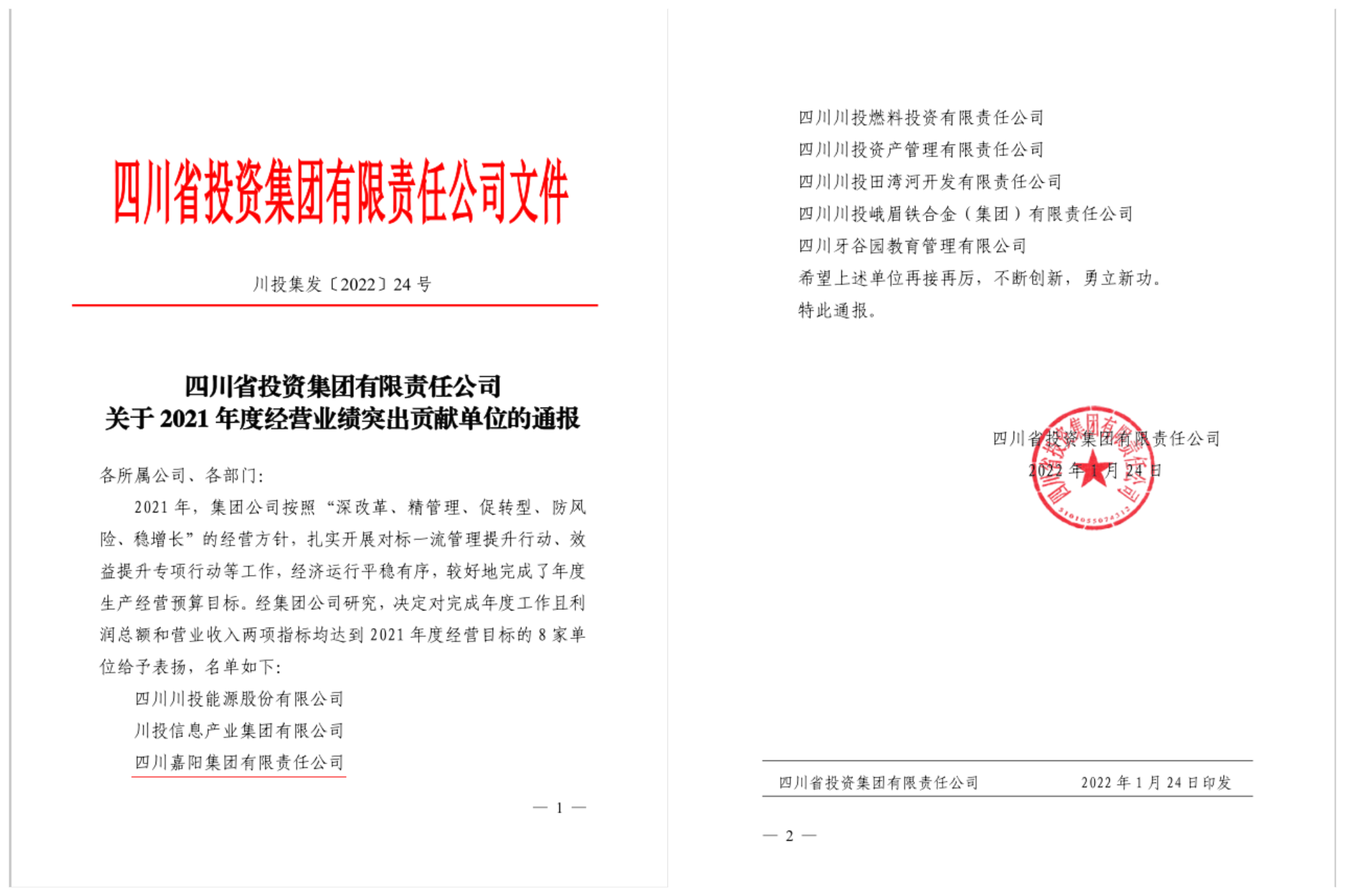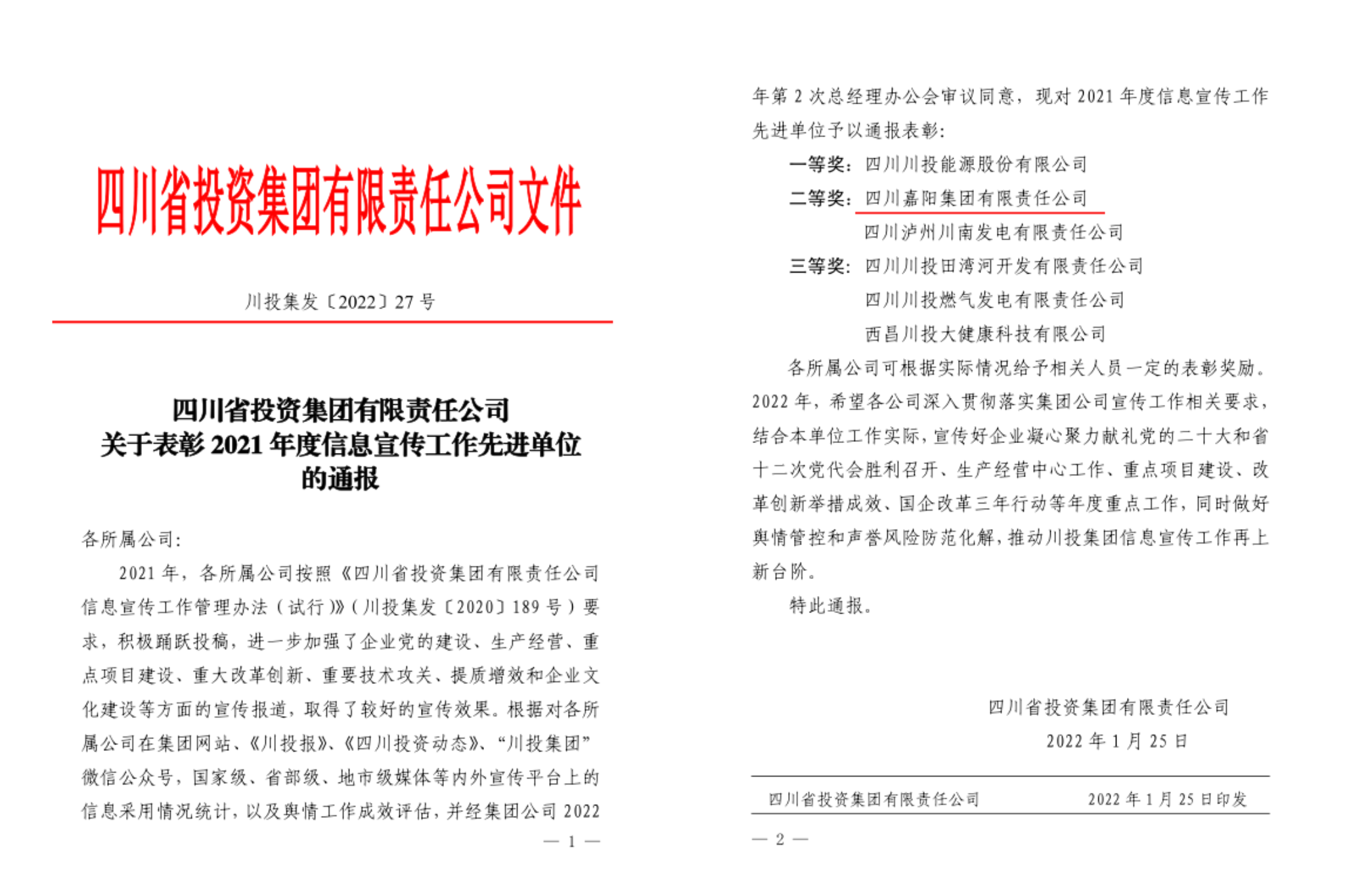 硕果累累,喜讯连连。1月25日,川投集团召开2022年度工作会,会议表彰了2021年度经营业绩突出贡献单位和信息宣传工作先进单位,华体会官方网页版,华体会(中国)公司喜获两项荣誉。