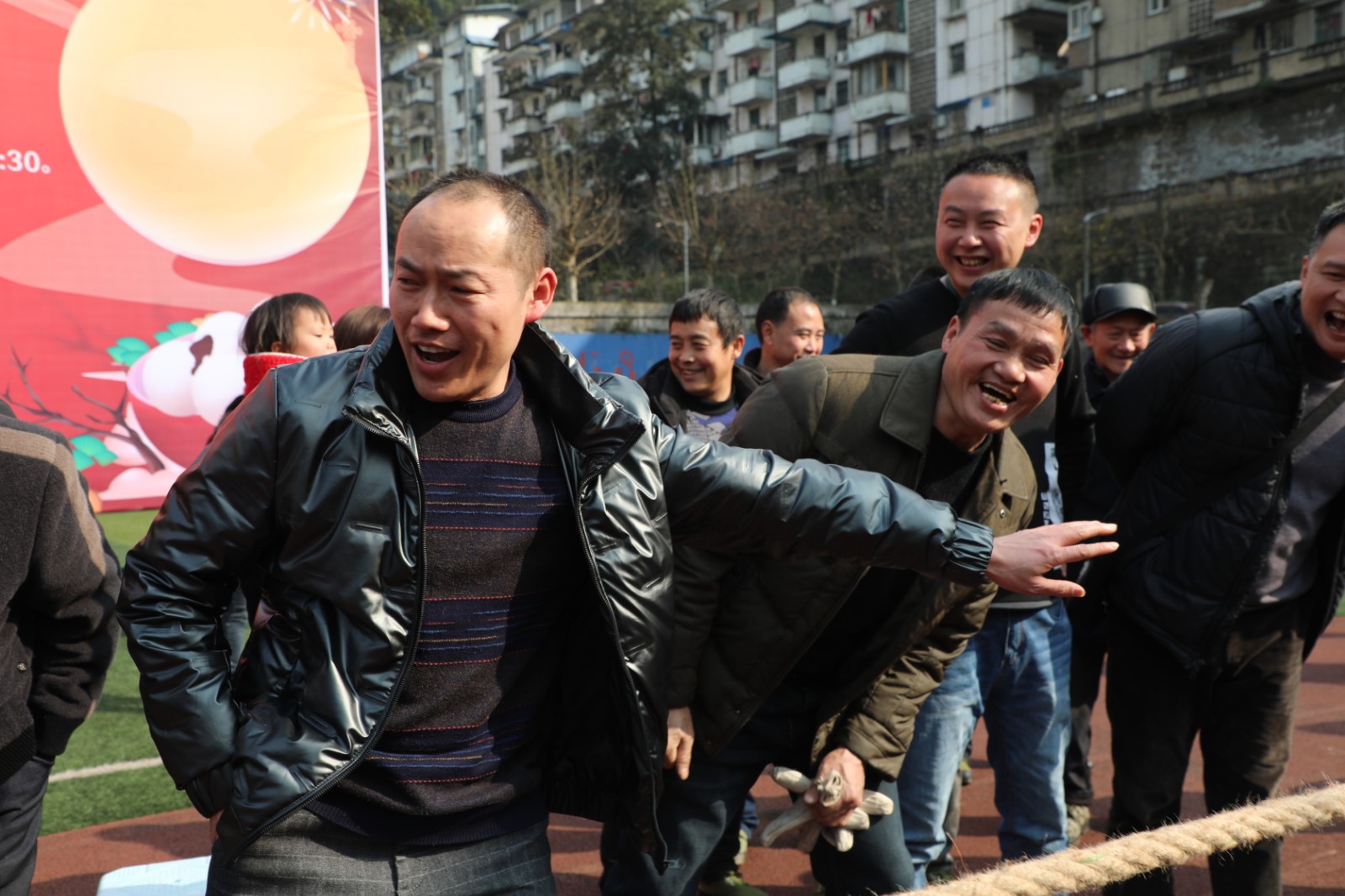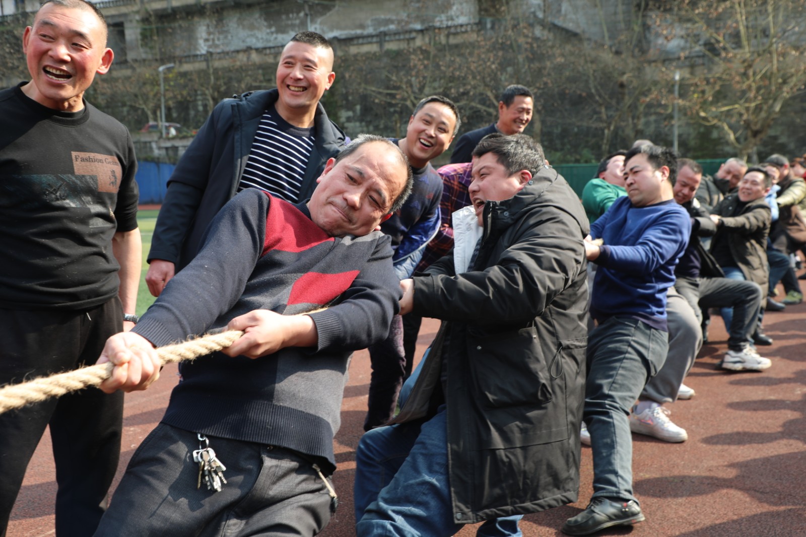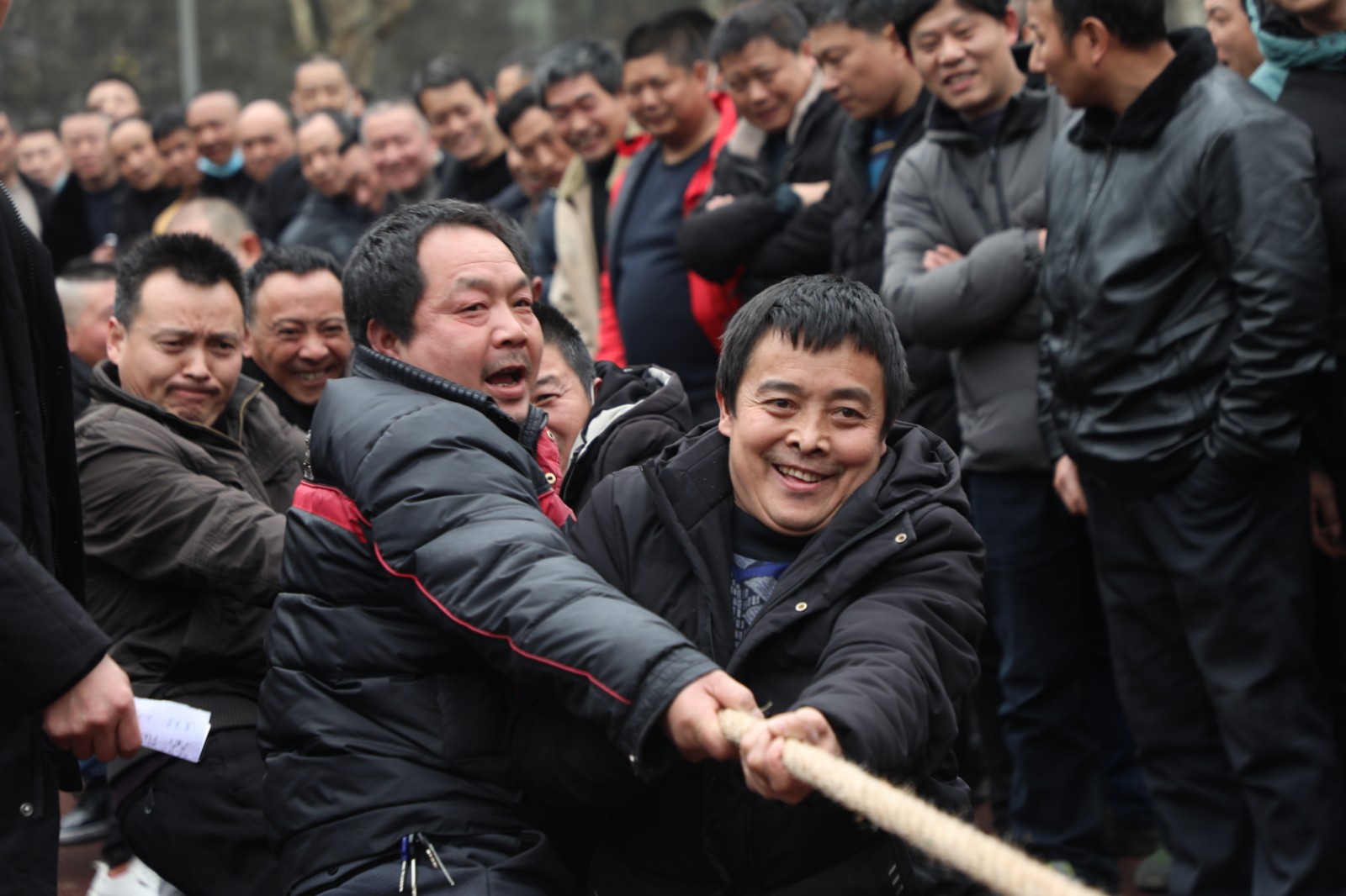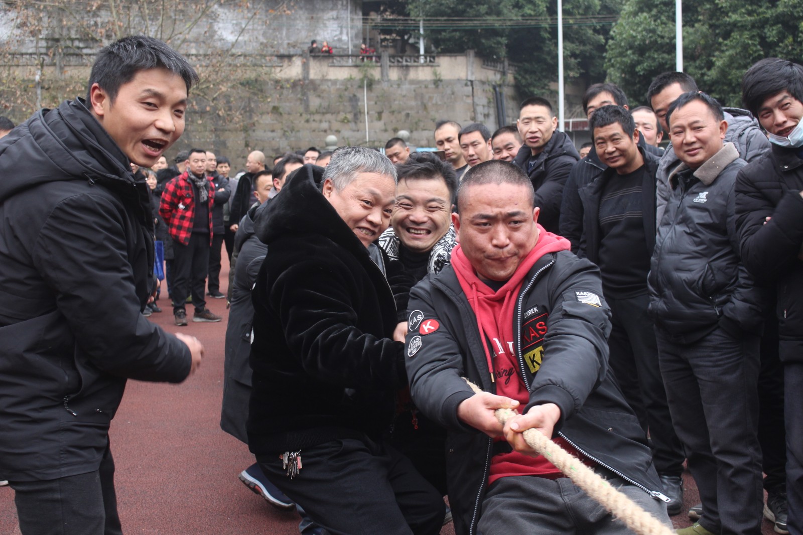 嘉阳煤矿职工拔河比赛于14日、15日下午在矿区足球场举行,共24支队伍390余人参赛。比赛分为淘汰赛、决赛两个阶段,采用三局二胜制。比赛一开始各队都气势如虹,蓄力鼓劲,队员们心往一处想,劲往一处使,观众们情绪高涨,呐喊助威声此起彼伏,经过激烈角逐,掘二队摘得桂冠,掘三队和采二队分别获得亚军、季军。