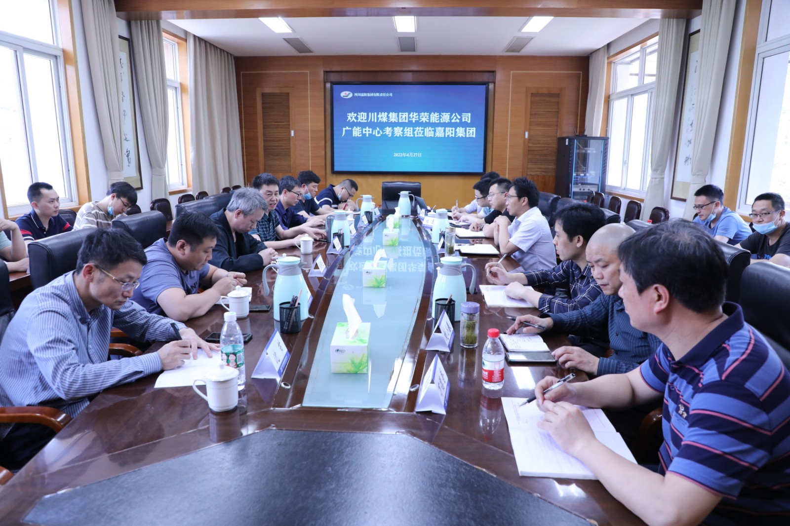 4月27日,川煤集团华荣能源公司广能中心生技部机运副部长彭高林一行11人到嘉阳考察交流。