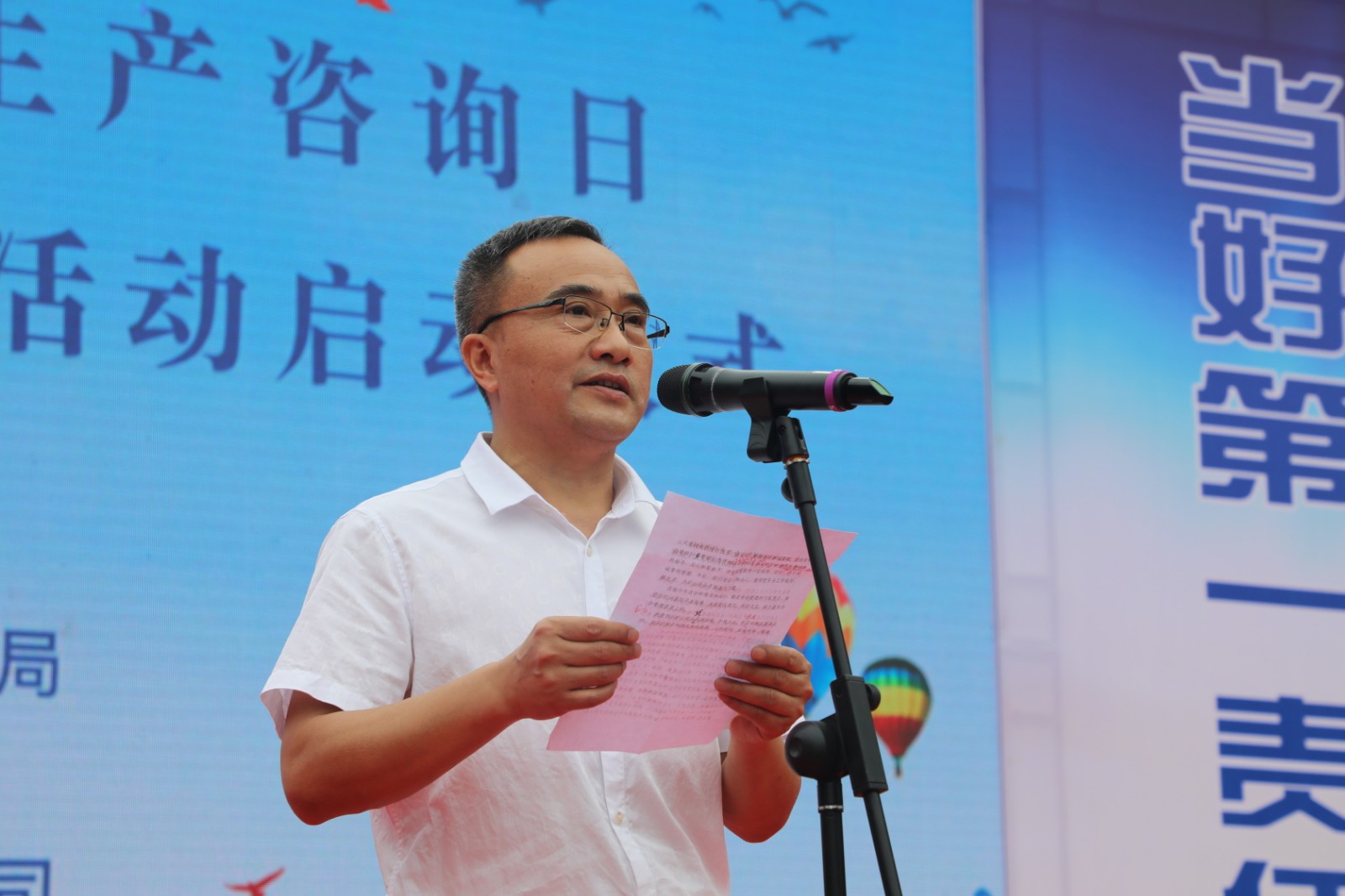 乐声阵阵,彩旗飘飘,活动通过观看2022年全国“安全生产月”宣传视频拉开帷幕。华体会官方网页版,华体会(中国)公司党委书记、董事长杜勤致欢迎辞,国家矿山安监局四川局监察执法五处处长余光林宣读《矿山安全生产倡议书》,乐山人民政府张德平副市长发表讲话,国家矿山安监局四川局总工程师、一级巡视员鄢正文对安全月活动的开展提出希望和要求。在6位领导的共同发力下,仪式启动球顺利开启,活动正式启动。华体会官方网页版,华体会(中国)总经理范勤英带领乐山市各企业安全第一责任人庄严宣誓,字字有力句句铿锵,对“遵守安全生产法、当好第一责任人”作出郑重承诺。