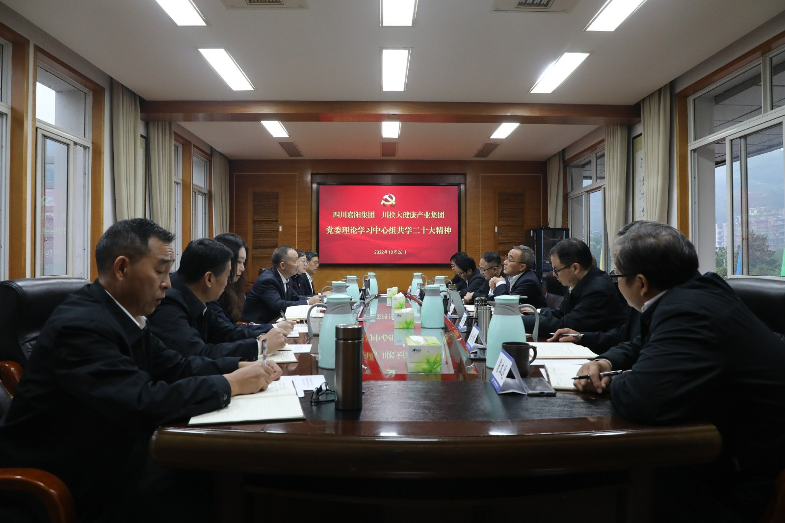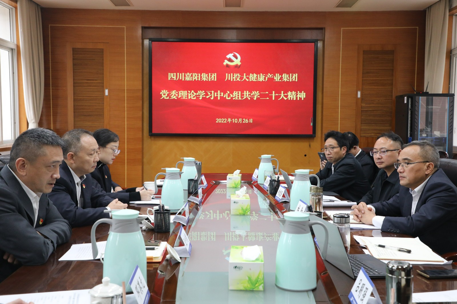 10月26日,为认真落实党建结对联建工作,华体会官方网页版,华体会(中国)党委与川投大健康产业集团党委召开中心组专题学习会,共同学习党的二十大报告,深入理解二十大精神,交流学习体会。