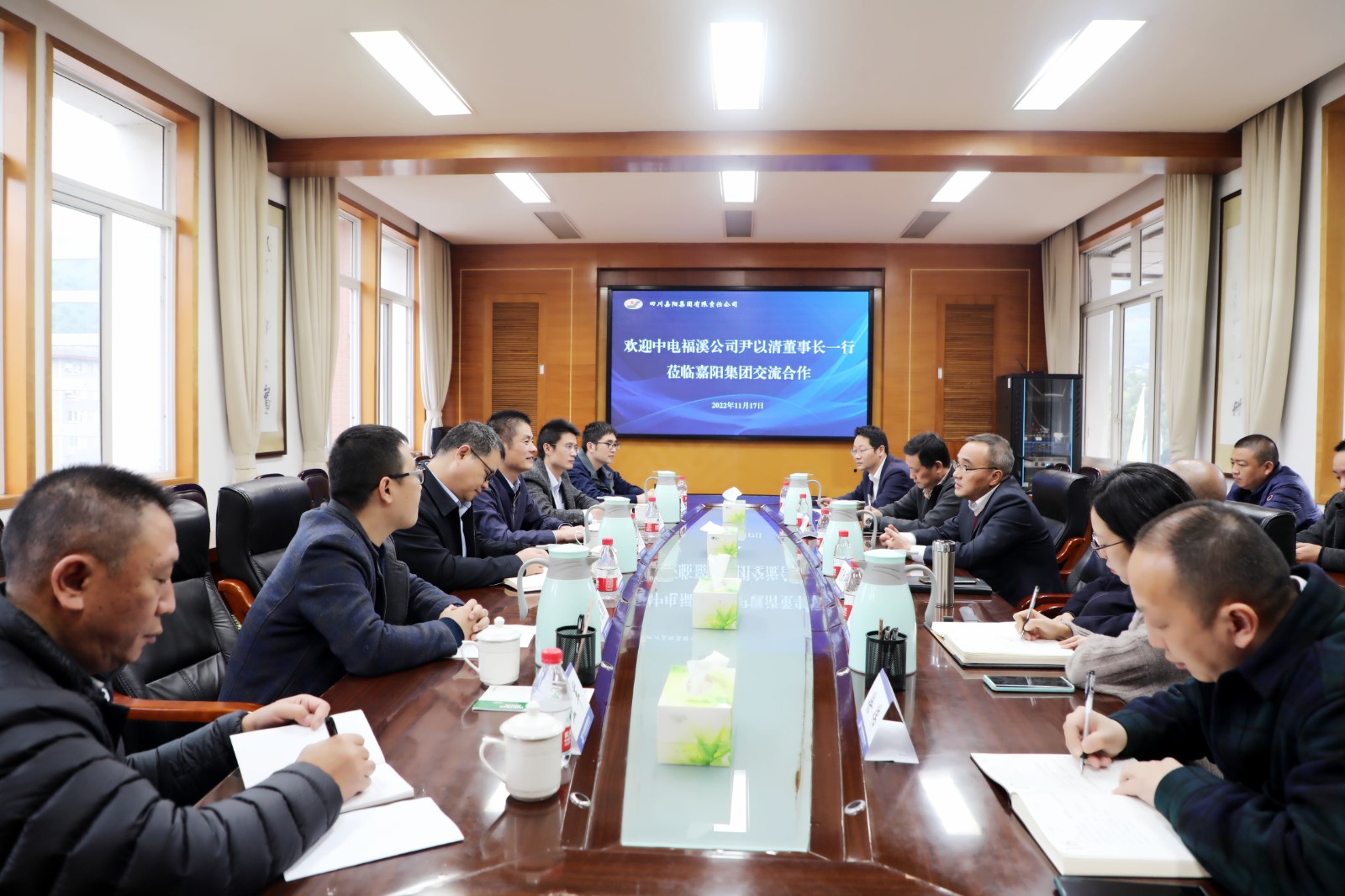 11月17日,中电福溪电力公司党委书记、董事长尹以清一行到华体会官方网页版,华体会(中国)就明年电煤长协事宜进行深入交流。华体会官方网页版,华体会(中国)党委书记、董事长杜勤,党委副书记、总经理范勤英出席座谈会。