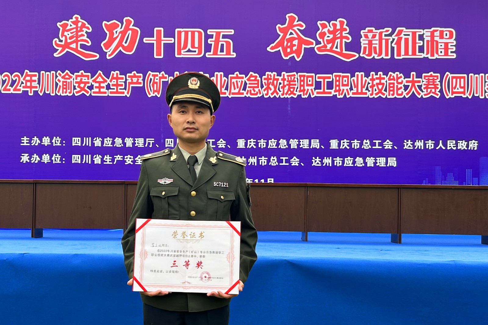 11月23日至24日,川渝安全生产(矿山)专业应急救援职工职业技能大赛在四川省达州市举行,华体会官方网页版,华体会(中国)矿山救护队参赛队员贺文冰荣获武装越野项目三等奖。